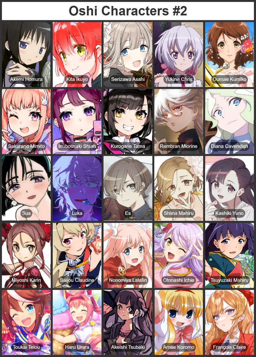 I like Mahou Shoujo no Saiban (Manosaba), Heaven Burns Red, RWBY, Pocket Mirror series, Vocaloid, The Aquarium Does Not Dance, Denonbu, BanG Dream!, Milgram, Alien Stage, Umamusume and many moreI also have voice fetish that's why I love people's unique voice in generalSometimes I upload doodles and singing videos because I'm bored (No, I'm not an artist)Here's my oshi list if you're interested